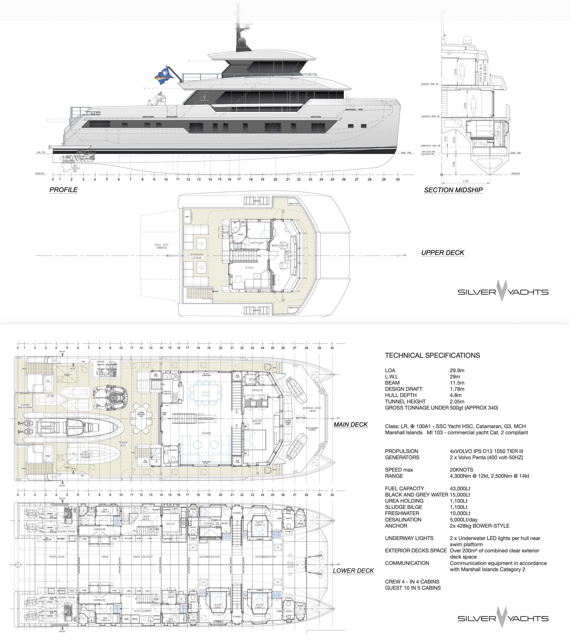 5 Guest Cabins | 4 Crew Cabins