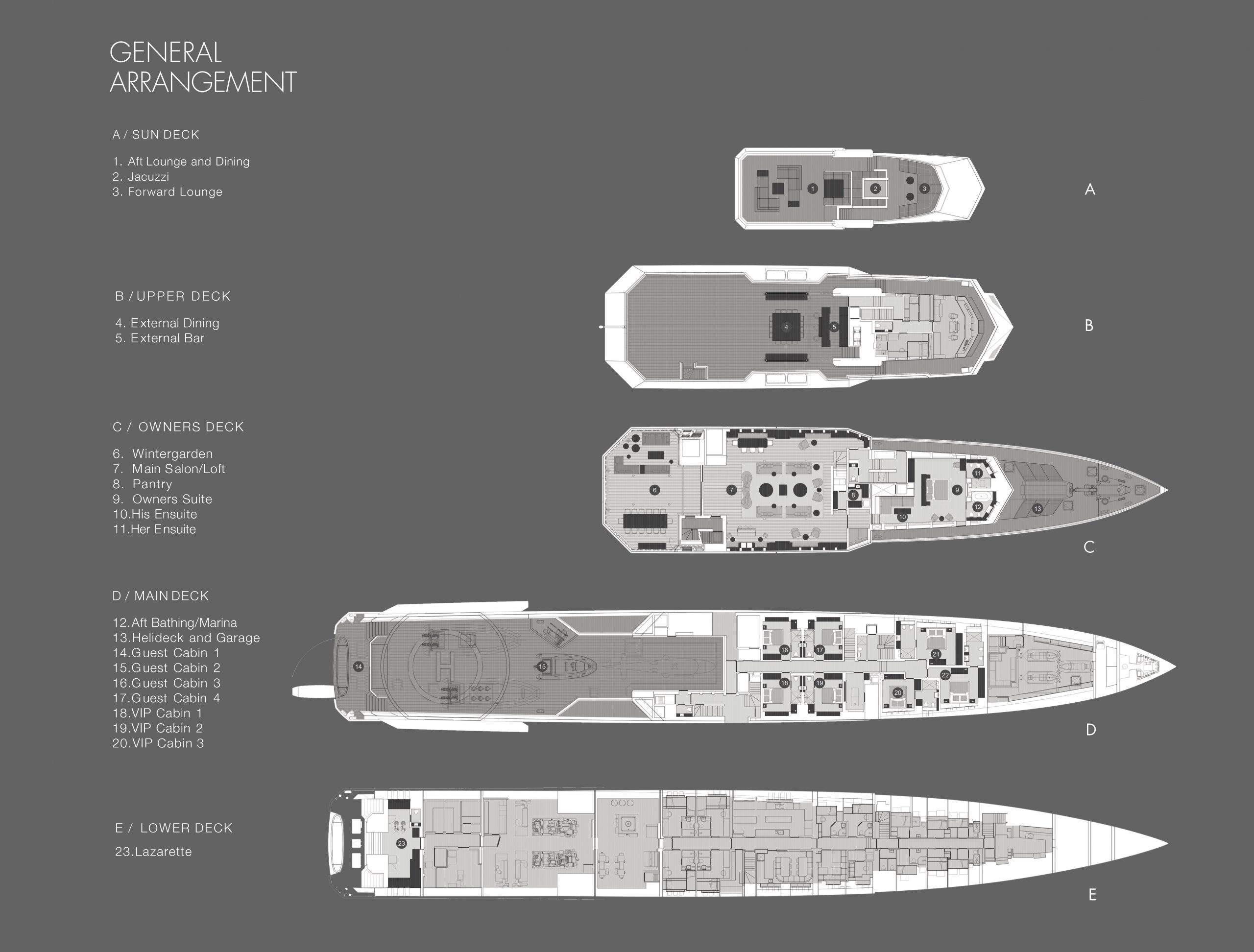 400m² Open Main Deck storing large Tenders